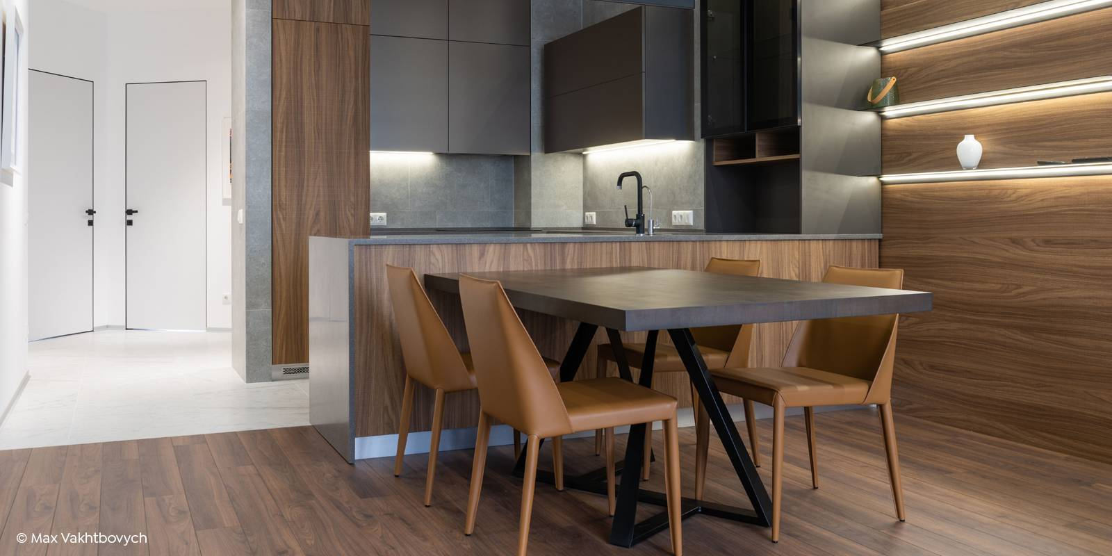 Le mois dernier, nous avons parlé de la douce couleur kaki. Changement de décor, aujourd’hui on fait sortir le côté obscur de la décoration : le subtil mélange entre le noir lumineux et le bois chaleureux.