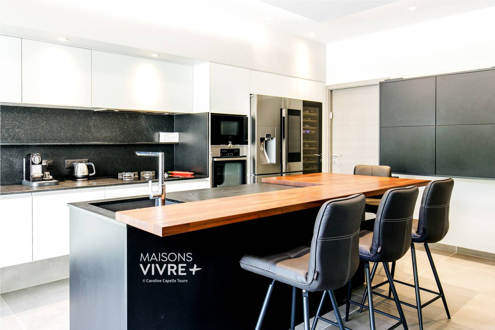 Idéalement située à la limite de Lyon, secteur Dardilly, Ecully, cette belle maison contemporaine avec toit terrasse et garage double bénéficie de prestations haut de gamme. Les grandes ouvertures en RAL7016 (gris anthracite) appuient son architecture contemporaine et permettent une luminosité chaleureuse à l’intérieur. Garde-corps en verre, décrochés de plafond éclairés, grands espaces : on retrouve la modernité de cette maison dans chacune des pièces. Côté terrasse, le spa vient poser la touche finale du confort de cette maison. Enfin, les plans ont été adaptés aux normes PMR, cette maison est accessible aux personnes à mobilité réduite.