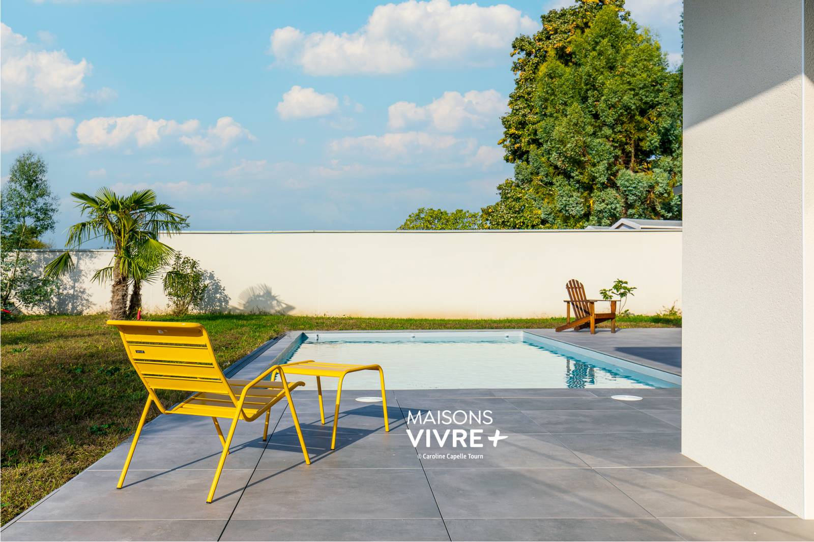 Maison contemporaine sur 3 niveaux en L dans les Monts d’Or