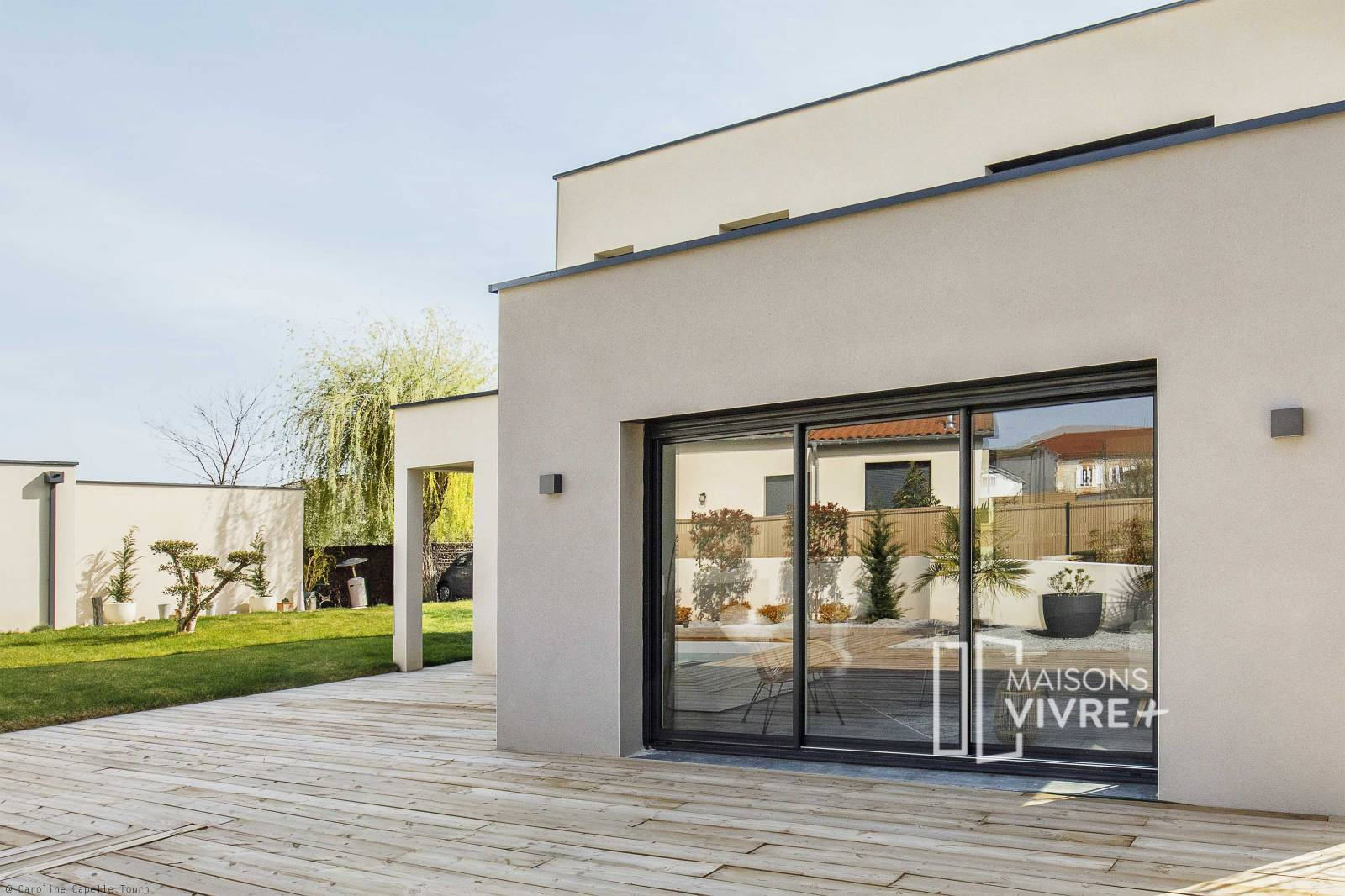 Maison contemporaine avec terrasse couverte dans l’Ain près de Miribel : lumière naturelle et design moderne