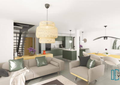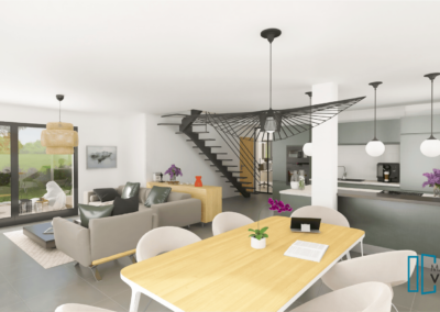 Bénéficiez de prestations haut de gamme incluant un escalier métal-bois, des sanitaires Vivre +, une pompe à chaleur air/eau, un plancher chauffant et rafraîchissant, ainsi qu’un carrelage en 60X60, pour un confort optimal au quotidien.