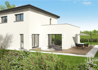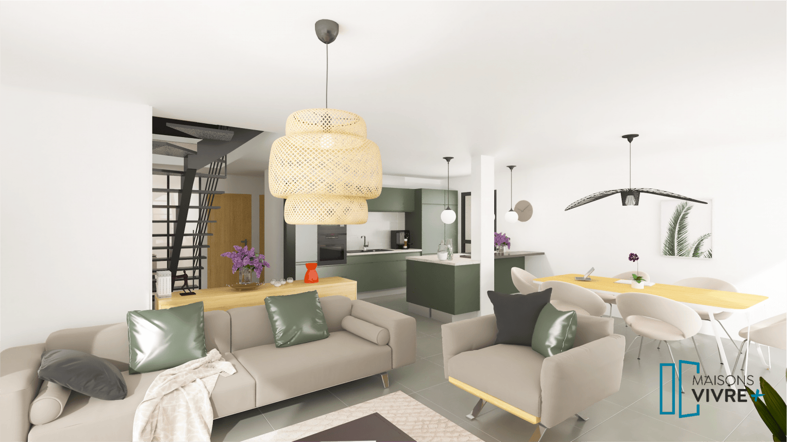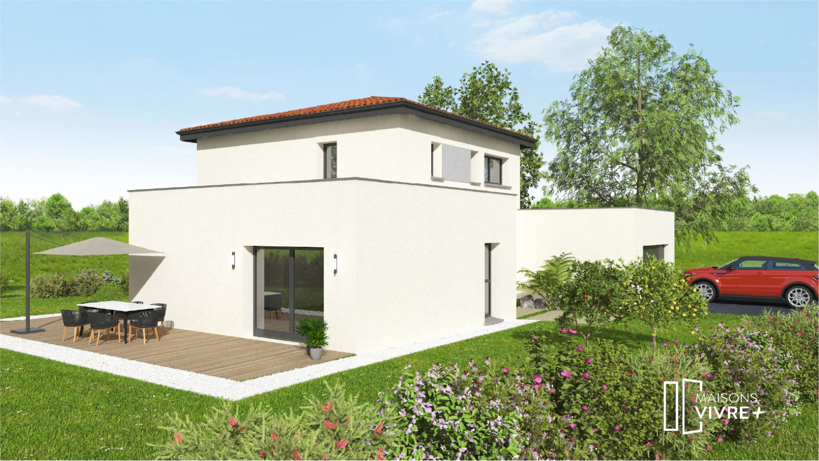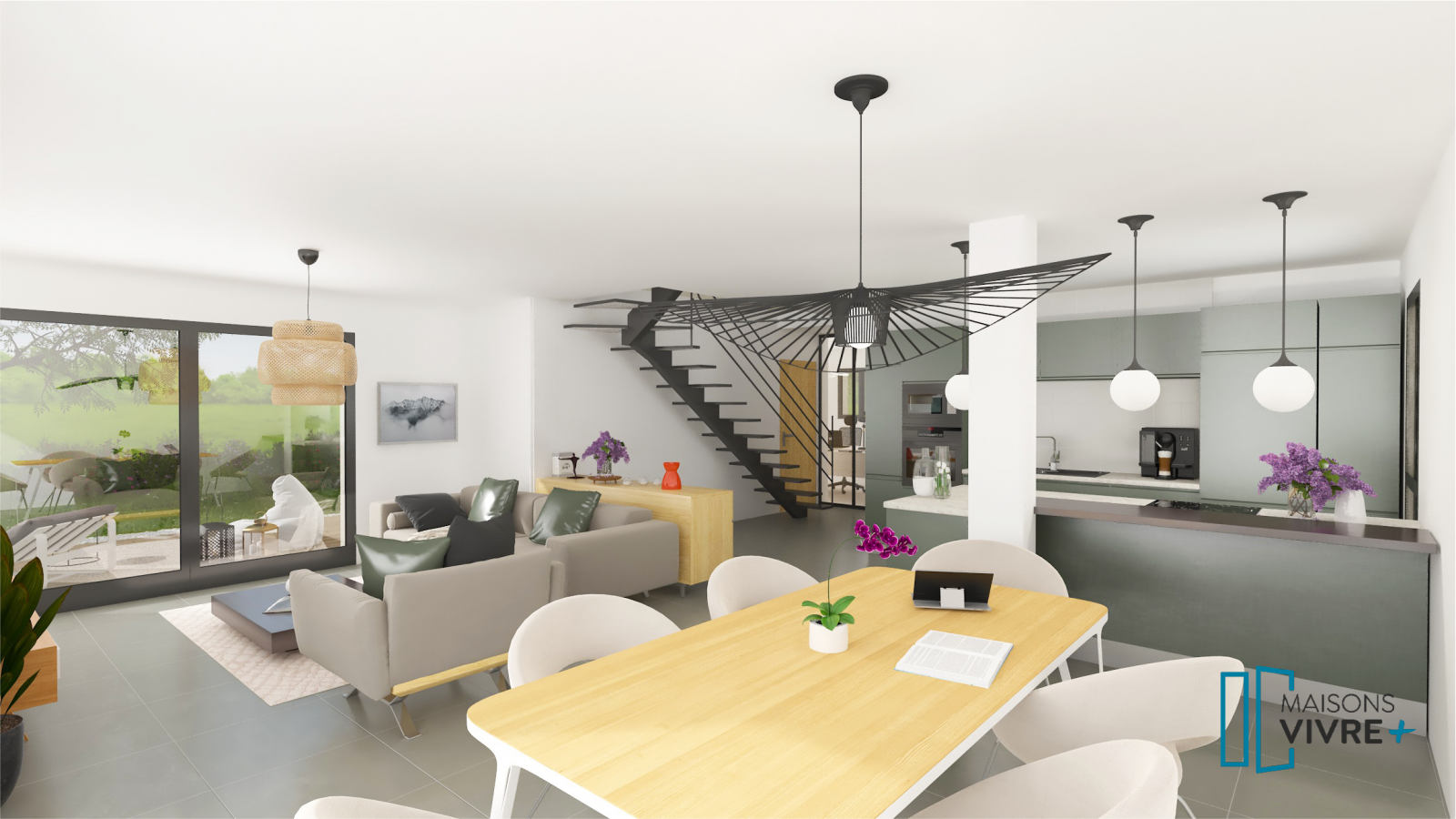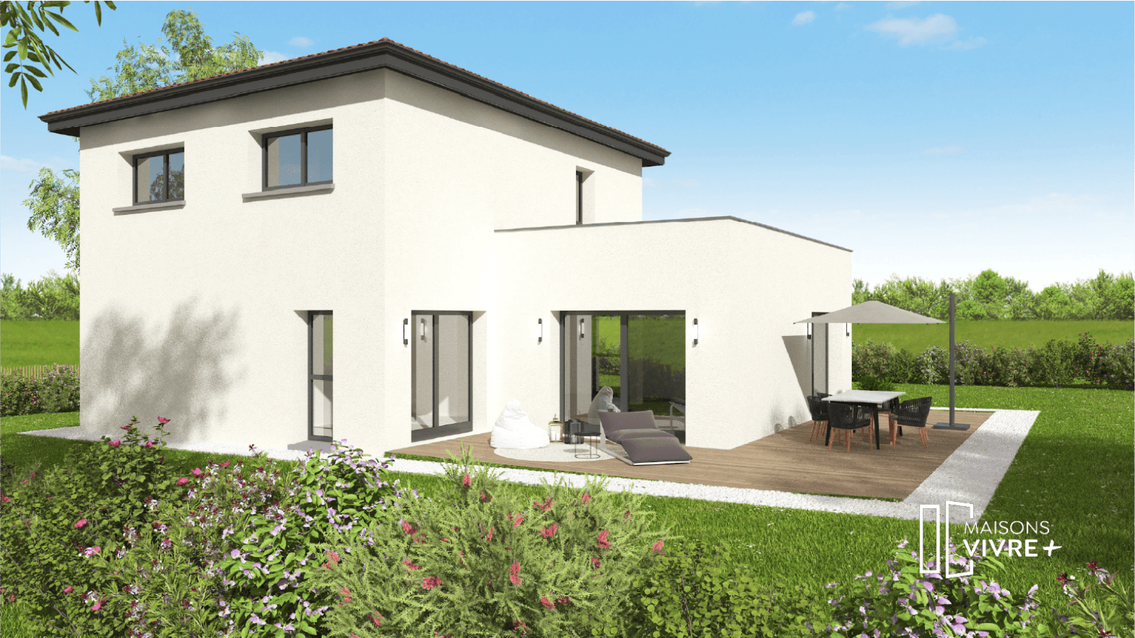 Maisons VIVRE PLUS vous propose un projet de construction sur mesure répondant aux normes RE2020. Découvrez cette maison de 145m², accompagnée d’un garage de 35m², conçue pour répondre aux besoins de toute la famille.