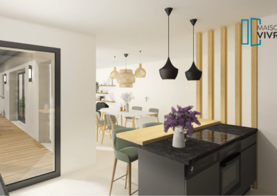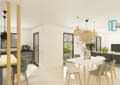 La maison a été pensée pour s’insérer au mieux dans le terrain et profiter au maximum de la vue.Budget terrain + maison : 275 000 € Le prix comprend le terrain, la maison entièrement finie sauf cuisine placard, hors frais de notaire applicable au terrain.———-