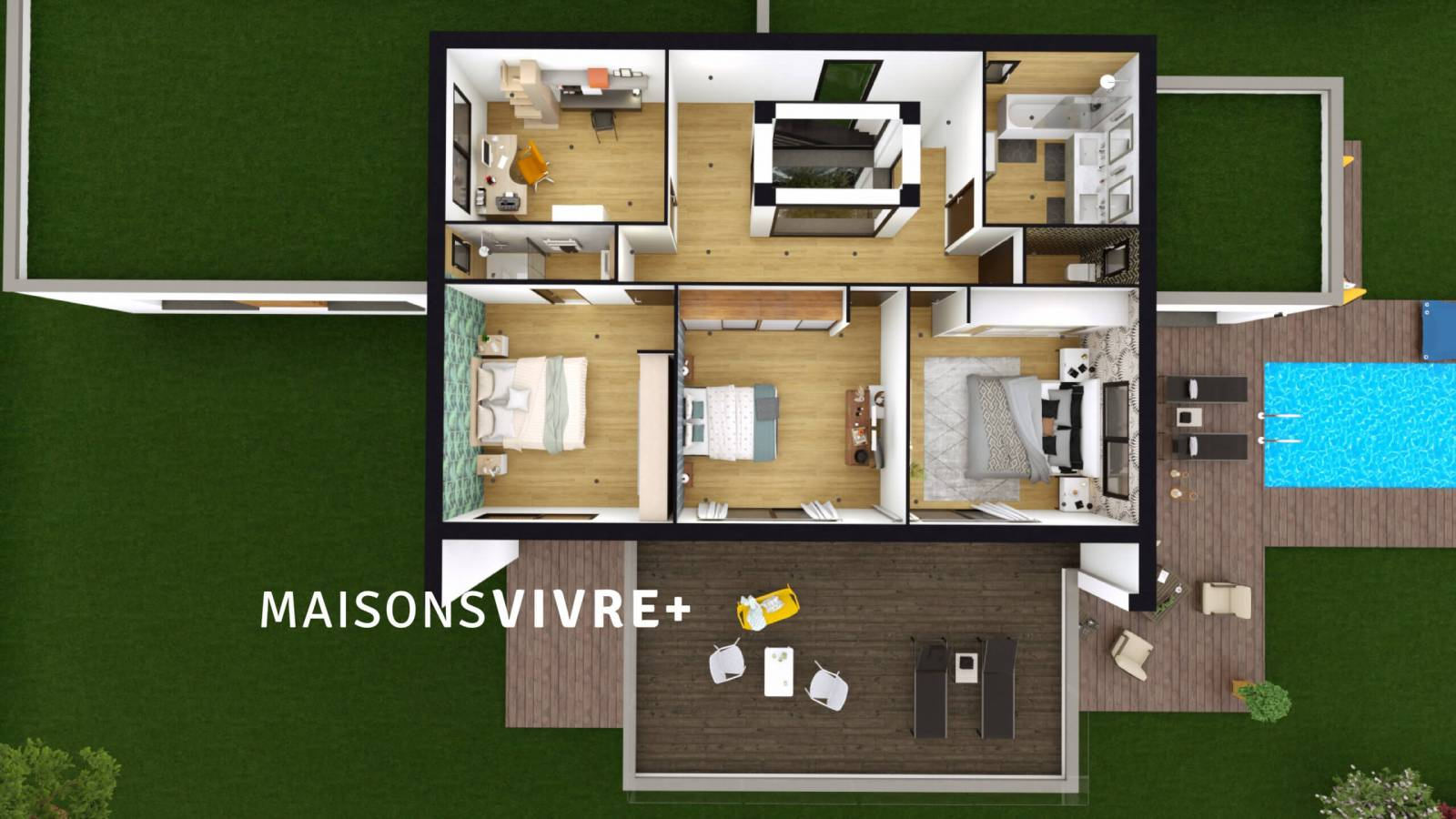 Nous vous proposons sur un terrain plat, calme et arboré de 1464m², un projet très moderne en toiture végétalisée de 233m² avec un garage de 52m² à Lyon 5em. Proche de STE FOY LES LYON, FRANCHEVILLE, OULLINS, TASSIN LA DEMI LUNE, CRAPONNE, CHAPONOST, ST GENIS LAVAL, PIERRE BENITE, ECULLY, à 18 min de la place Bellecour à Lyon. Profitez de ce terrain plat et arboré, dans un secteur calme et proche du centre-ville. A 13 minutes à pieds de Point du Jour. Proche de la mairie, des commerces, des écoles. A 600 mètres de l’arrêt de bus TCL « Les Battières » où passent les bus 65, 73E, C21, C24 et C24E. La gare de Lyon Perrache se trouve à 12 minutes en voiture. Accès d’autoroute : 4 minutes du périphérique Lyonnais qui dessert les axes autoroutiers A6/A7 pour Paris-Marseille-Genève. Ce terrain en fond d’impasse profite d’une très belle exposition SUD-OUEST-EST.Maisons Vivre PLUS vous propose de construire votre maison selon vos envies et sur mesure.– LE QUARTIER –Lyon 5 est une commune huppée et animée du département du Rhône (69005).Écoles, crèches et lycées : 11,4 étab./km²Commerces : 1,7 tous les 100mType de quartier : Huppé et animé– LA MAISON –Nous vous proposons un projet très moderne en toiture végétalisée de 233m² avec un garage de 52m². Vous profiterez d’une salle à manger/cuisine ouverte de 45m², d’un salon de 42m² d’une suite parentale avec salle de bain, dressing et toilettes privatifs, d’un grand cellier de 8m² faisant tampon entre le garage et la cuisine, ainsi que de 3 grandes chambres à l’étage de 17m² chacune, dont une avec salle d’eau privative et les deux autres ayant un accès à une toiture terrasse de 43m², une grande salle de bain équipée, un grand bureau de12m² et de toilettes séparées.Nous vous donnerons accès à un large choix de matériaux et d’équipements.Coût du projet terrain + maison : 1 393 000 €Le prix comprend le terrain et la maison. (Hors frais de notaire, VRD et taxes)Constructeur de maisons individuelles depuis plus de 30 ans, n’hésitez pas à nous contacter.