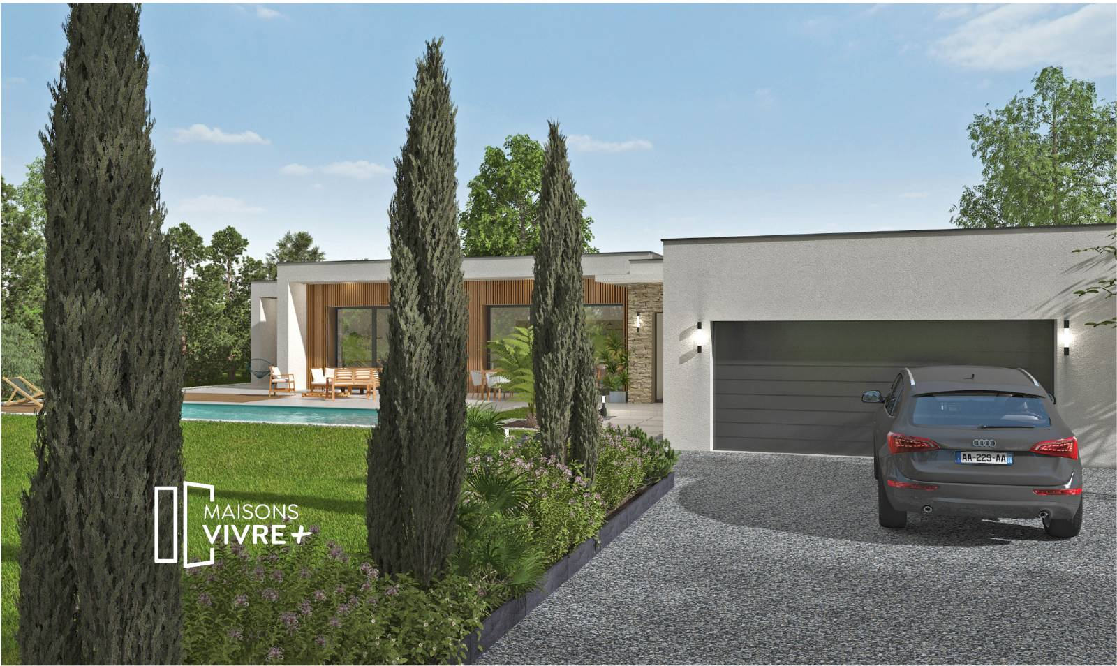 Maisons Vivre PLUS vous propose de construire votre maison selon vos envies et sur mesure. Nous vous proposons grâce à notre partenaire foncier, sur un terrain de 1390 m², un projet haut de gamme en plain-pied de 179 m² habitable avec un garage de 48m². Entrez dans ce beau plain-pied par un hall d’accueil de 10 m² communiquant avec la buanderie et le garage. Le hall s’ouvre sur un séjour cuisine ouverte de 72 m² avec une hauteur sous plafond de 2,90 m. Un espace suite parental à l’écart des chambres d’enfants composé d’une chambre de 13m² avec un grand dressing, une grande salle de douche et des toilettes séparés. Les chambres d’enfants font 14.5m² chacune et partagent une grande salle de bain avec toilettes séparés. Un troisième WC séparé se trouve à l’entrée de la maison.